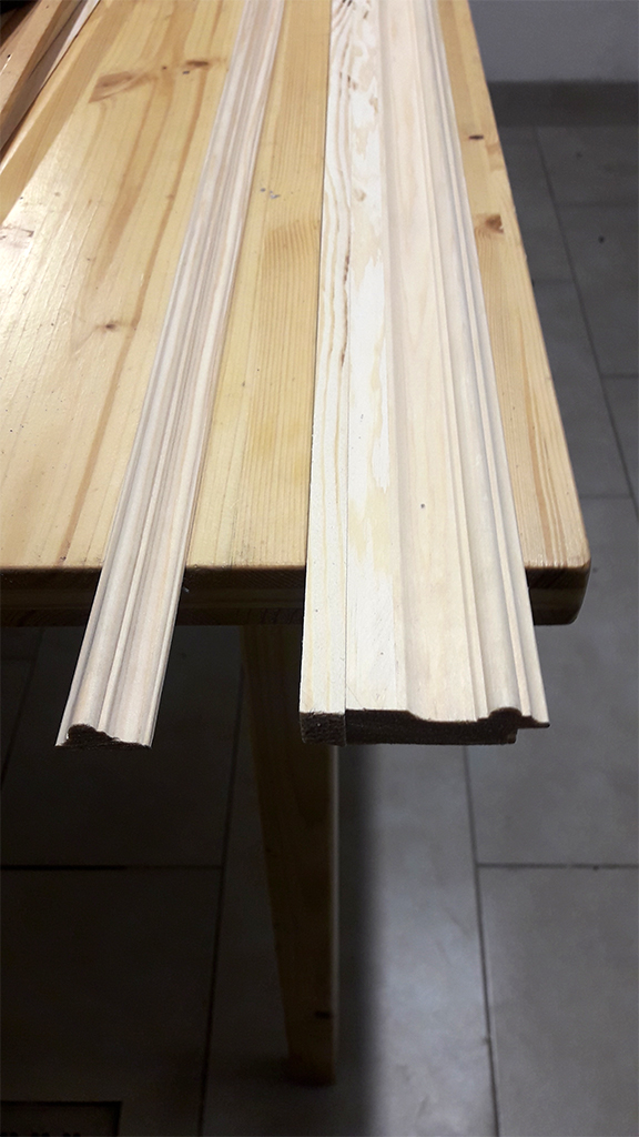 Lemnul se debitează la dimensiunile dorite și se lasă la aclimatizat, pentru a evita deformarea ulterioară. Ulterior, se trece la rindeluire și frezare, folosind scule profilate corespunzătoare formei secțiunii pervazului.